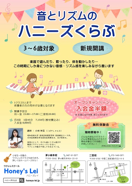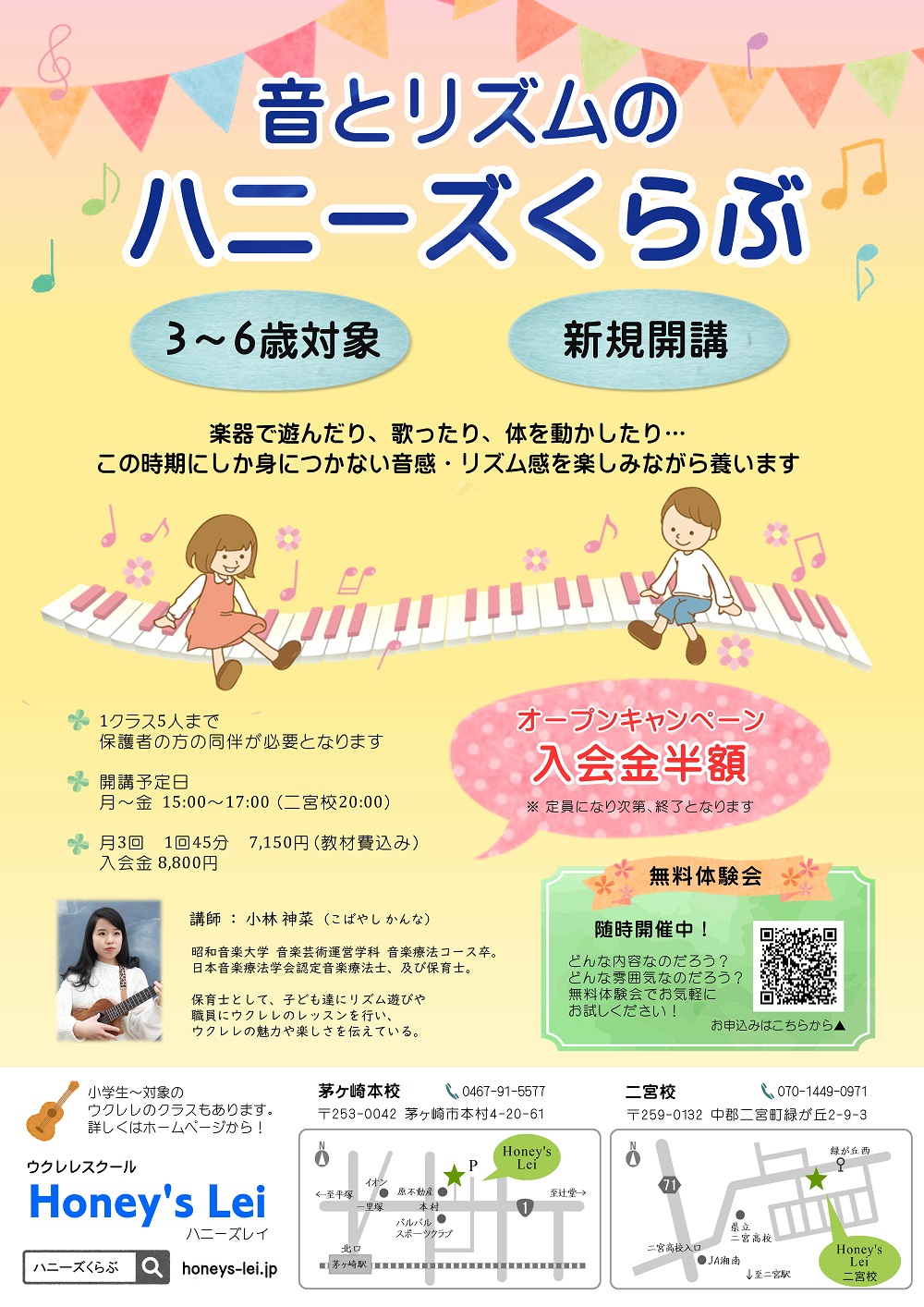 ハニーズくらぶでは、幼児期にしか身につかない音感やリズム感を楽しみながら養います。